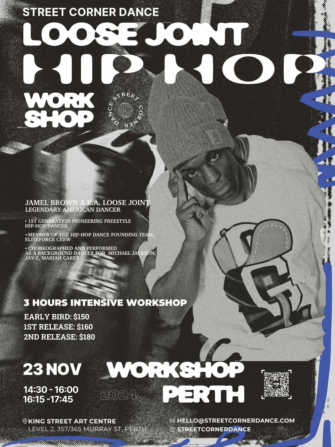 From a member of “Fantastic Duo” in Hip Hop Classic movie “Beat Street” in 1984 to dancer for Michael Jackson’s, “Remember The Time” video 1992 and “Wreckin’ Shop” Documentary as a member of Elite Force, Loose’s career highlights the authentic evolution from an Electric Boogie dancer to a Hip Hop Freestyle dancer, as a prolific dancer and pioneer today.